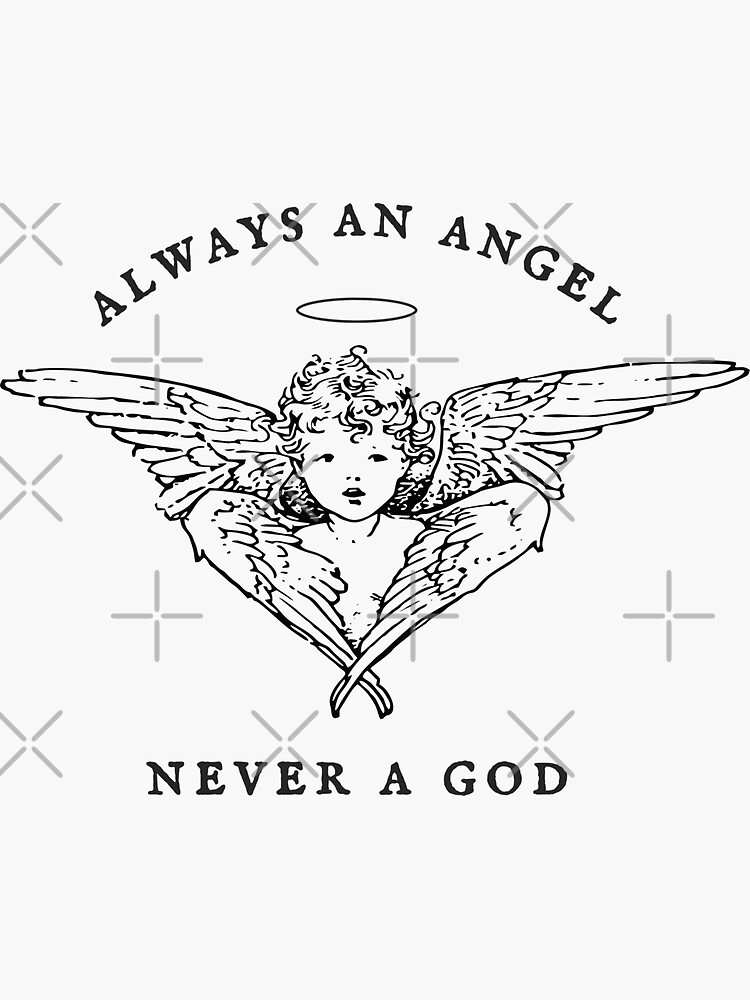 "always an angel never a god" Sticker for Sale by biancaelena13 Redbubble