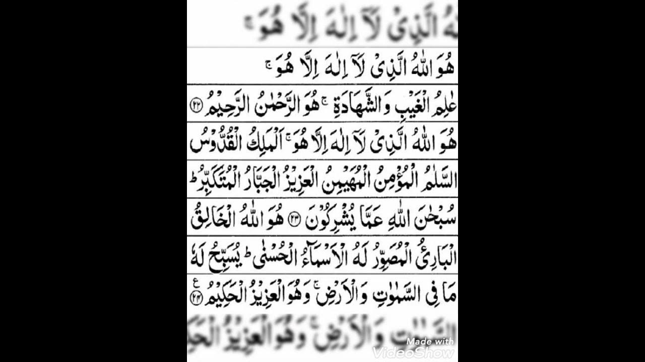 Surah Hashr Last 3 Ayat 7 Times {Surah Al Hashr HD Arabic Text} Online Teaching Center Rujukan